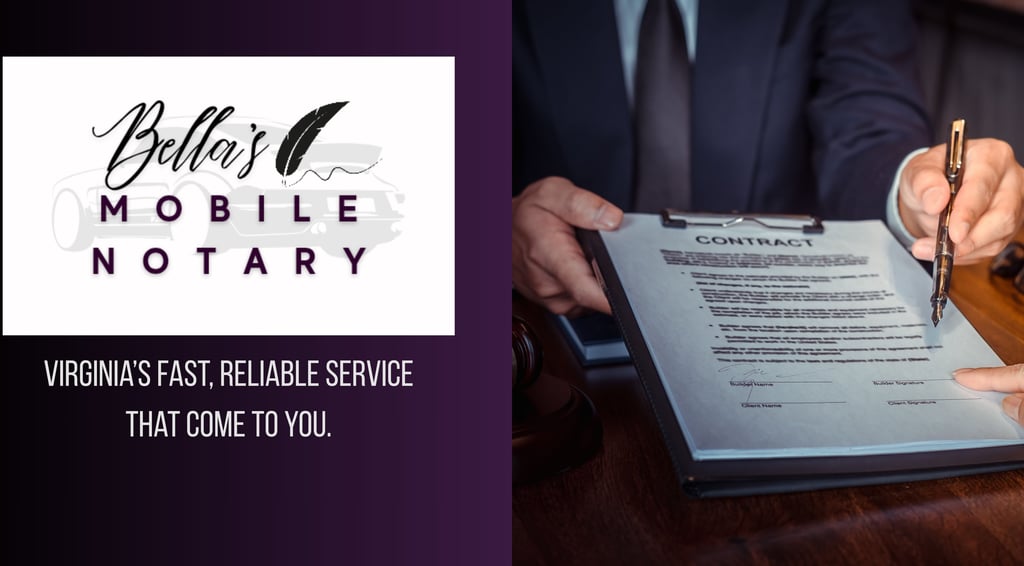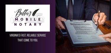 At Bella’s of Virginia Mobile Notary Public, my mission is to provide fast, reliable, and professional notary services designed to meet you where you are. I am committed to making the notarization process simple, secure, and stress-free by bringing trusted service directly to your home, business, or preferred location. With integrity at the heart of everything we do, our goal is to ensure every client feels confident, supported, and valued—every time.
